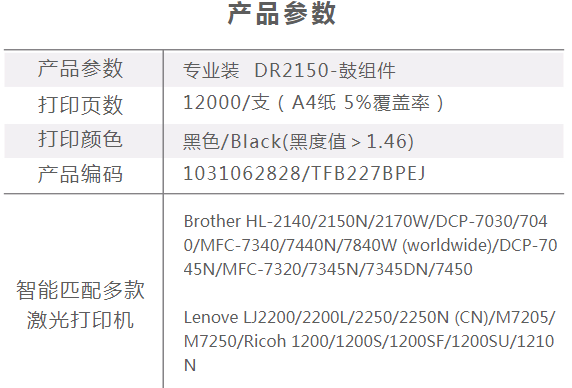商品名称:天威 LENOVO-LD2822/BROTHER-DR2150-鼓组件 专业装 适用于HL-2140/2150N/2170W DCP-7030/7040 MFC-7340/7440N/7840W