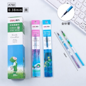 - 商品名称:得力 A760 中性笔替芯0.38mm全针管(黑) 20支/盒 (计价单位:支)