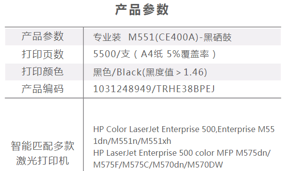 商品名称:天威CE400A通用硒鼓 黑色 专业装 适用HP507A M551n M551dn M551xh MFP M575dn M575f M575C Canon LBP7780Cx