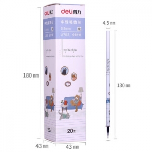 商品名称:得力 A763 中性替芯0.5mm全针管(黑) 20支/盒