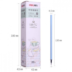 - 商品名称:得力 A764 中性替芯0.38mm全针管(黑) 20支/盒