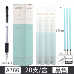 商品名称:得力 A766 中性笔替芯0.5mm子弹头(黑) 20支/盒 (计价单位:支)