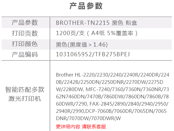 商品名称:天威 BROTHER-TN2215/LENOVO-LT2441-黑色粉盒 适用于 HL-2220/2230/2240 MFC-7240/7360/7360N FAX-2845/2890/2840