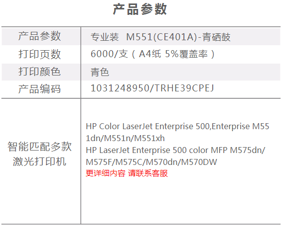 商品名称:天威CE401A通用硒鼓 青色 专业装 适用HP507A M551n M551dn M551xh M575dn M575f M575C Canon LBP7780Cx