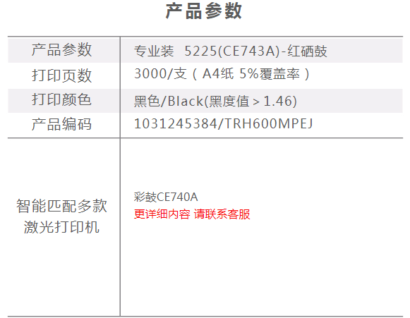 商品名称:天威 HP-5225(CE743A)-红通用硒鼓带芯片 专业装 适用于CP5225/5225n/5225dn/Canon LBP9100cdn