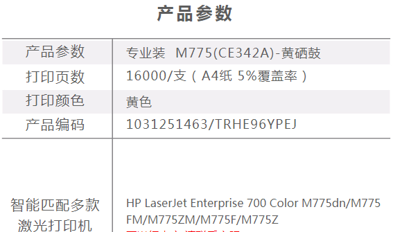 商品名称:天威 CE342A 黄色通用硒鼓 专业装 适用于惠普 700 color MFP M775dn M775f M775z 打印机通用硒鼓 带