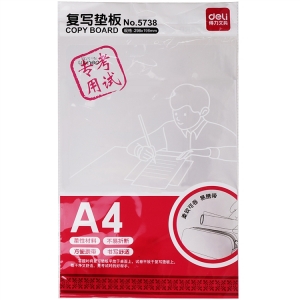 商品名称:得力5738-A4复写垫板(透明)(个) 100/盒 298x198mm