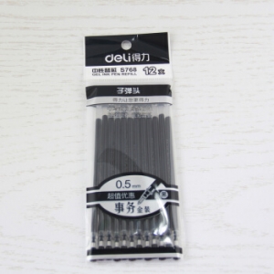 商品名称:得力 S768 中性替芯0.5mm子弹头(黑)(12支/袋) 20/盒/240/箱