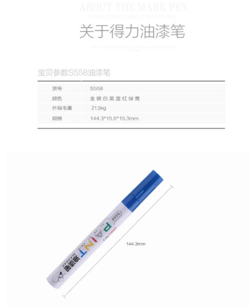 商品名称:得力 S558 油漆笔(金色) 12/盒/144/包864/箱