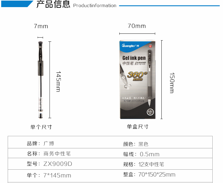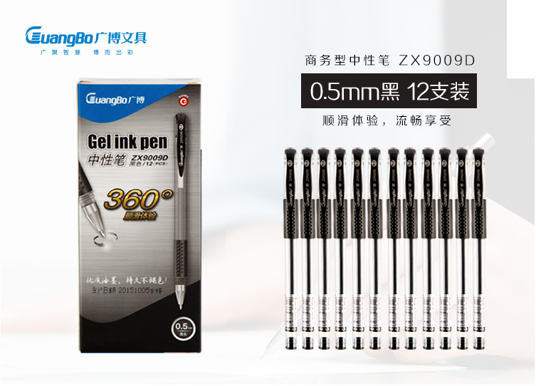 商品名称:广博(GuangBo) 0.5mm黑色中性笔 子弹头水笔 办公签字笔 ZX9009D (计价单位:支)