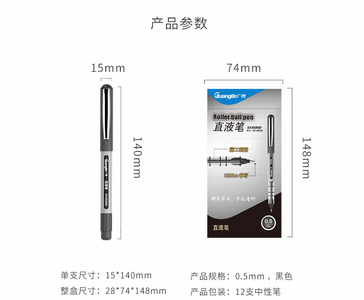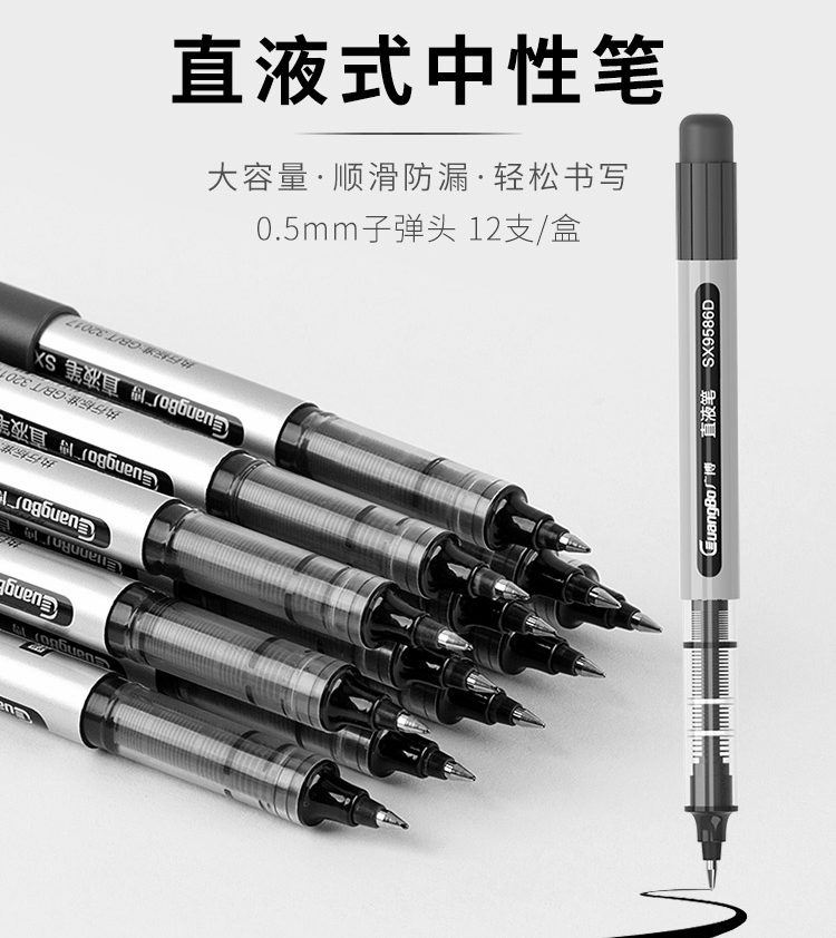 商品名称:广博(GuangBo)0.5mm黑色直液式走珠笔 签字中性笔 学生考试笔 12支/盒 SX9586D (计价单位:支)