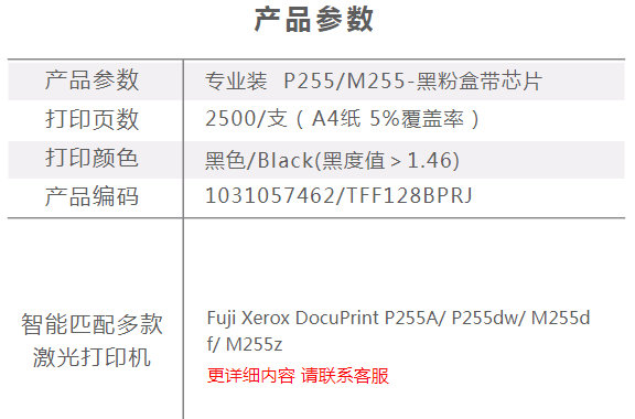 商品名称:天威 XEROX-P255/M255-黑色粉盒带芯片 专业装 适用于富士施乐P255A/ P255dw/ M255df/ M255z