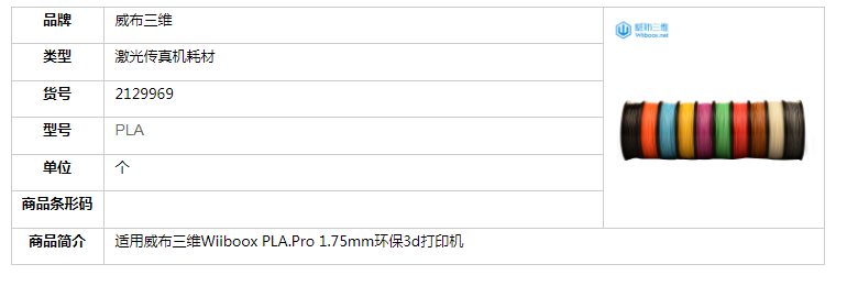 - 商品名称:威布三维 硒鼓 PLA 适用威布三维Wiiboox PLA.Pro 1.75mm环保3d打印机