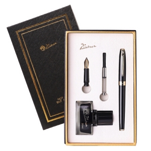 - 商品名称:毕加索(pimio)钢笔带小墨水礼盒套装双笔尖套装0.5mm+0.7mm男女办公书法练字笔美工笔T717亮黑金夹
