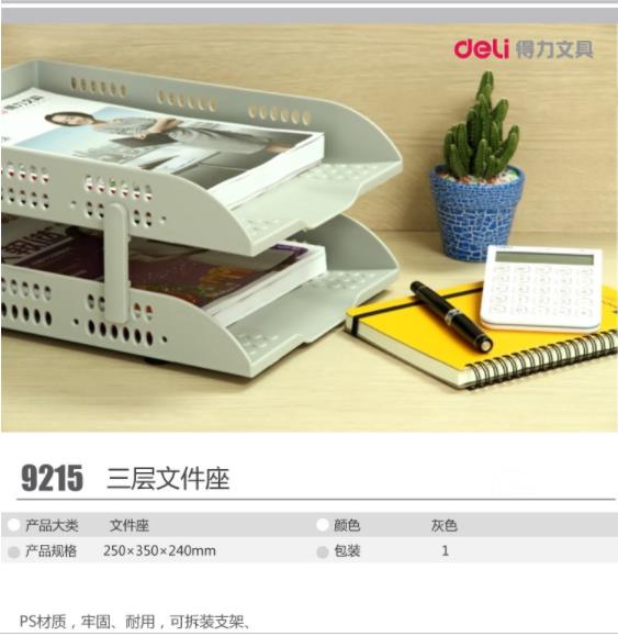 商品名称:得力 9215 三层文件座(灰白)(只) 12/箱