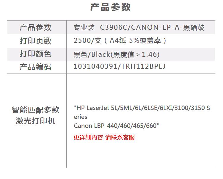 商品名称:天威 HP-C3906A/CANON-EP-A-黑色通用硒鼓 专业装 适用于惠普5L/5ML/6L/6LSE 佳能LBP-440/460/465/660