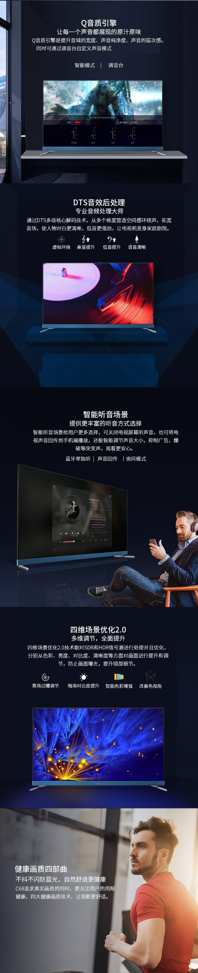 商品名称:TCL 65C68 系37核全场景AI人工智能 4K超高清网络WIFI液晶平板电视 65英寸前置音响大屏