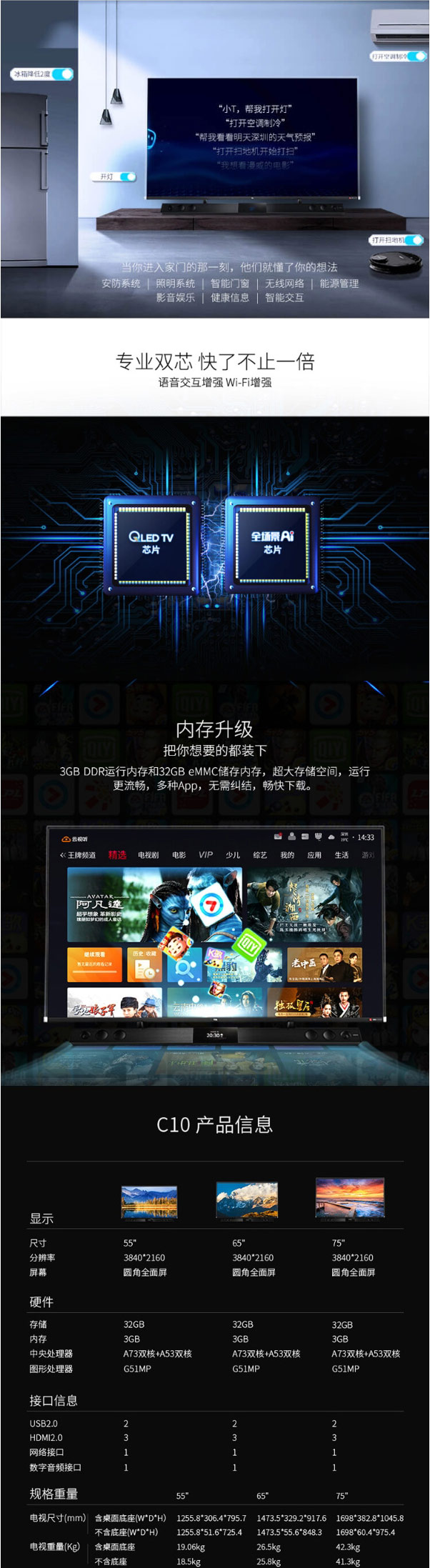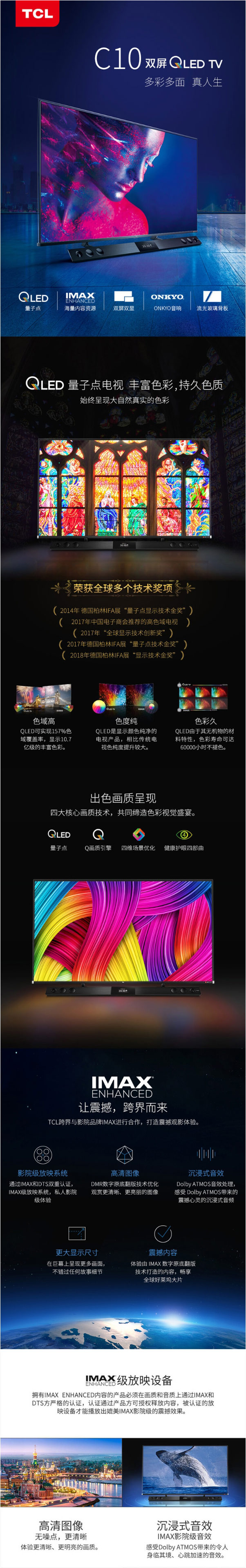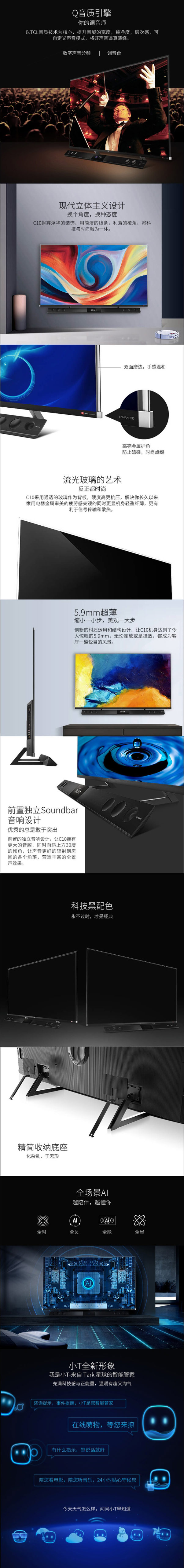 TCL 55C10 55英寸液晶电视机 4k超高清 量子点全面屏 智慧屏 前置独立音响 157%超高色域