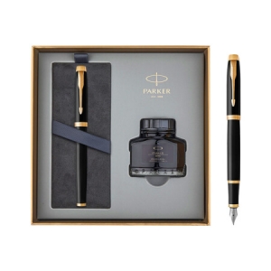 派克 PARKER 16款IM 纯黑丽雅金夹 钢笔/墨水笔+新款墨水礼盒套装