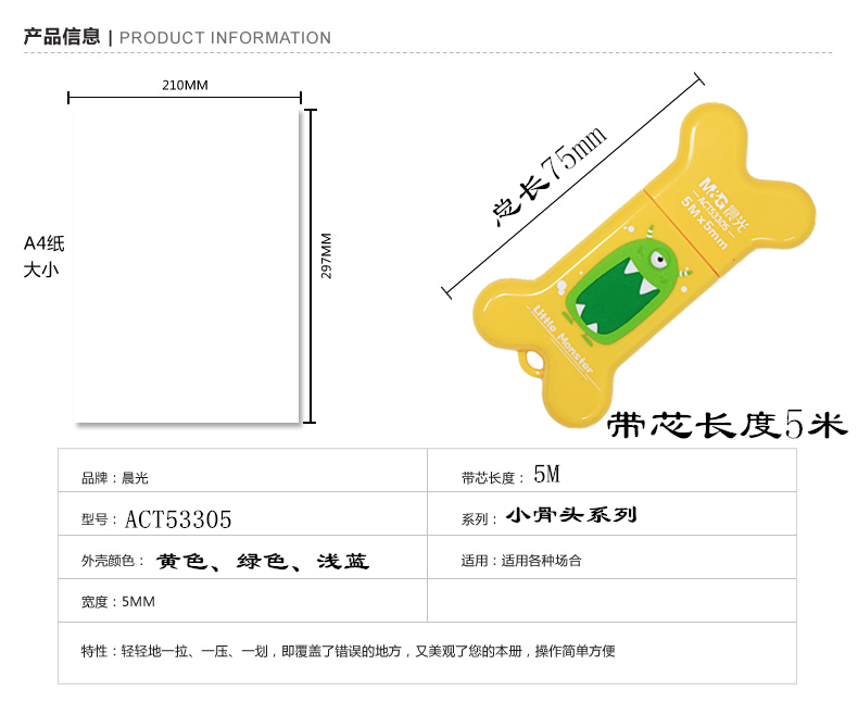 商品名称:晨光 ACT53305 修正带白5m 12个/盒