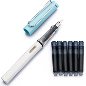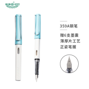 英雄(HERO)359A 正姿 学生办公练字铱金钢笔签字笔 薄厚片工艺铱金笔尖(赠6支墨囊) 蓝白EF尖