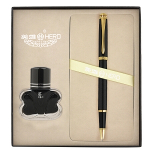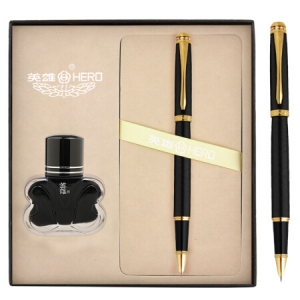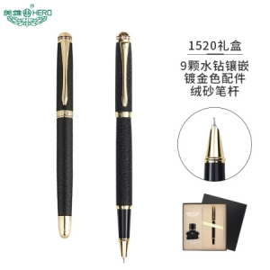 英雄(HERO)1520 黑色绒砂多彩细尖铱金钢笔 签字笔 男女款办公礼品墨水礼盒套装