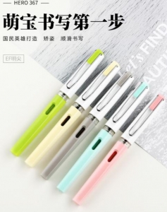 英雄(HERO)钢笔玲珑少年 367 学生办公练字正姿铱金钢笔(赠6支墨囊) EF尖 蓝色
