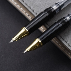 英雄(HERO)1520 绒砂多彩细尖铱金钢笔/特细钢笔/美工笔 三合一 男女款办公礼品墨水礼盒套装 黑色