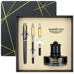 商品名称:英雄(HERO)1802 铱金钢笔/宝珠笔/美工笔三合一签字笔墨水礼盒套装 黑色