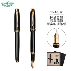 英雄(HERO)953 黑丽雅 0.5mm明尖铱金钢笔签字笔时尚商务墨水礼盒套装