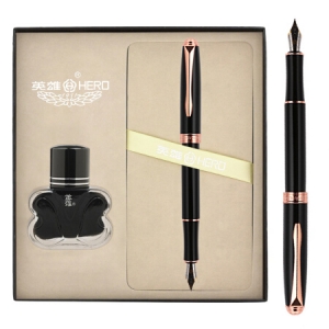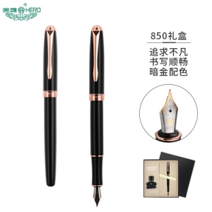 英雄(HERO)钢笔文具时尚男女铱金钢笔商务办公个性墨水笔礼盒套装 850 黑色
