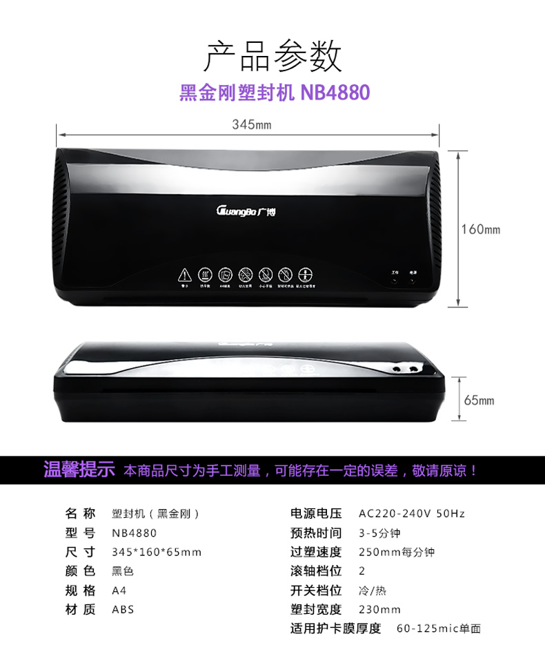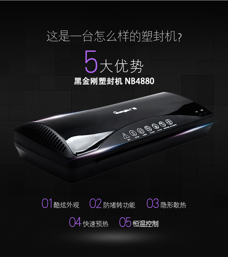 商品名称:广博NB4880 A4黑金刚塑封机