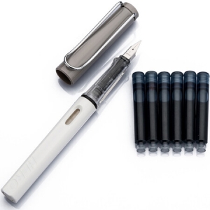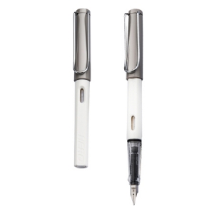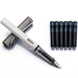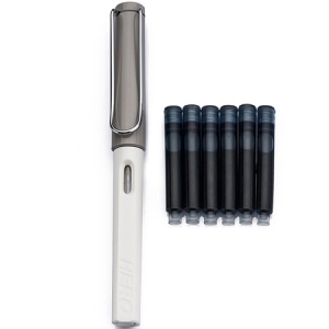 英雄(HERO)359A 正姿 学生办公练字铱金钢笔签字笔 薄厚片工艺铱金笔尖(赠6支墨囊) 灰白F尖