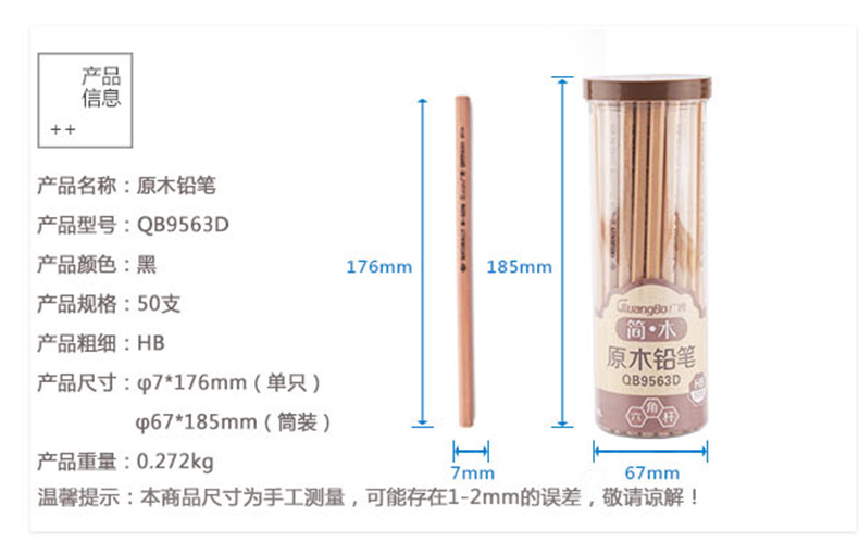 商品名称:广博 QB9563D 简·木铅笔HB(50只装)