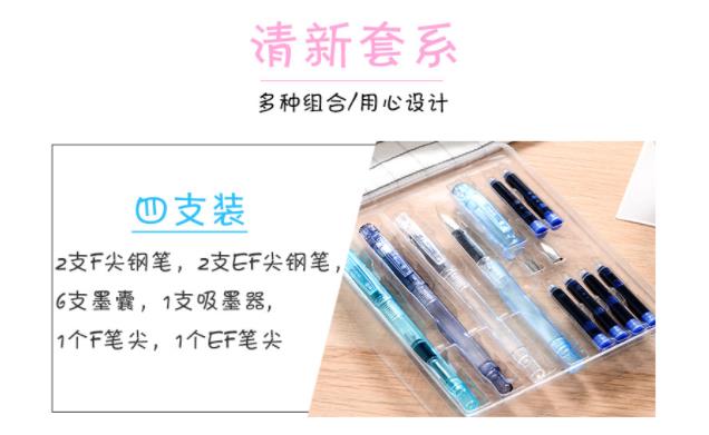 商品名称:英雄(HERO)395A 学生用正姿书写练字钢笔墨囊套装 女生款 EF暗尖+F明尖