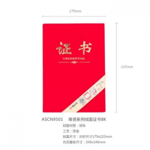 商品名称:晨光 ASCN9501 尊贤绒面证书8K 含芯
