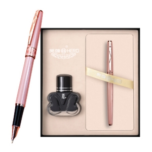 英雄(HERO)2066 多彩细尖铱金钢笔 签字笔 男女款办公礼品墨水礼盒套装粉色
