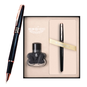 英雄(HERO)2066 多彩细尖铱金钢笔 签字笔 男女款办公礼品墨水礼盒套装黑色