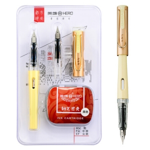 英雄(HERO)368 美人鱼 黄色 EF+F双尖薄厚片 都市时尚办公学生练字钢笔签字笔(赠10支墨囊)铱金礼盒套装