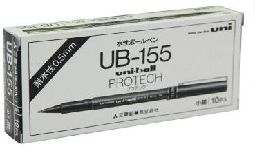 品牌:uni-ball 三菱 ,名称:耐水签字笔,型号:UB-155,1支装。规格:0.5mm,颜色:蓝色 , 特点: 钨碳滚珠,不锈钢嘴;金属色笔杆, 防水及耐晒颜料墨液; 书写后绝对防水; 金属钢夹,高贵华丽。
