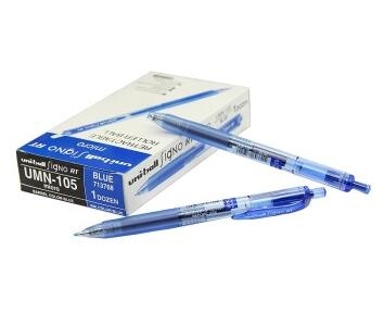 品牌:三菱,名称:按制双珠走珠啫喱笔UMN-105,颜色:蓝色,1支装。笔尖:0.5mm,替代笔芯为:UMR-85,三菱按动中性笔,0.5mm笔咀,双珠设计,可防止墨液倒流。墨水防水防晒,流线型亮丽笔杆,塑胶笔握。书写流利顺畅