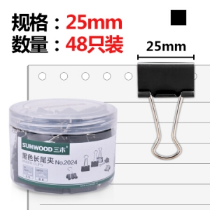- 商品名称:三木 2024 25mm黑色长尾夹 48只/筒