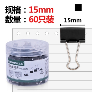 - 商品名称:三木 2026 15mm黑色长尾夹 60只/筒