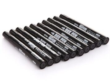 箱头、纸、布、塑料、金属、木头等任何光滑表面,书写流畅,不易褪色。书写线幅:3.5mm 注意:油墨具有挥发性,用后请盖紧笔盖,并保持水平放置,请远离儿童。