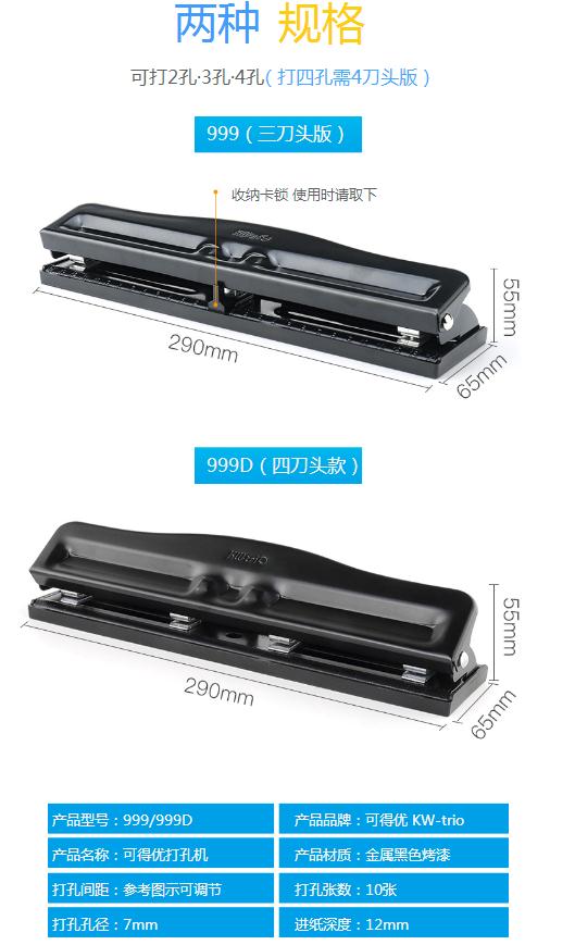 商品名称:可得优 999 3孔可调式打孔机 10张