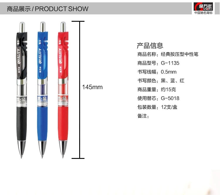 - 商品名称:金万年G-1135商务专用按压中性笔0.5mm