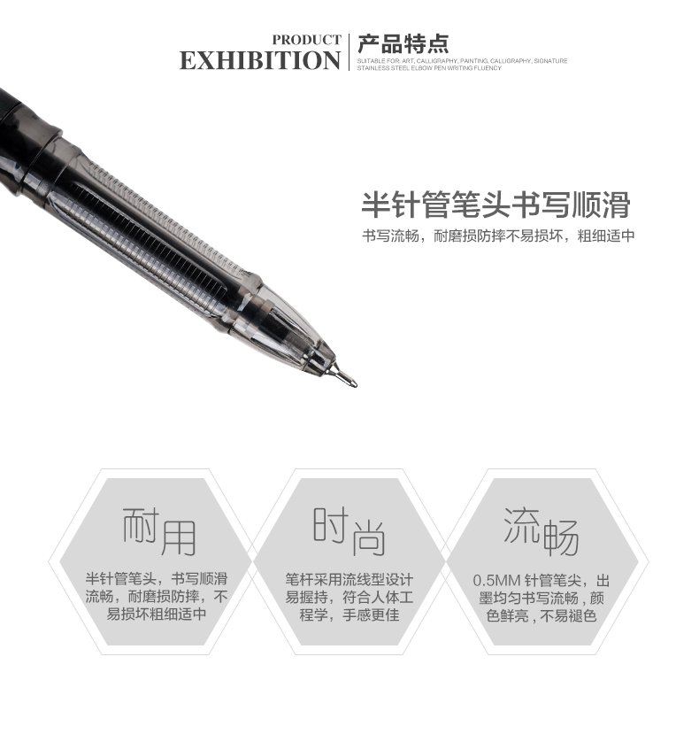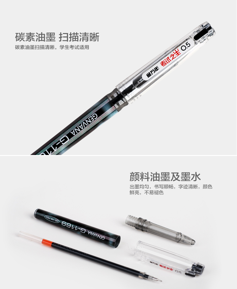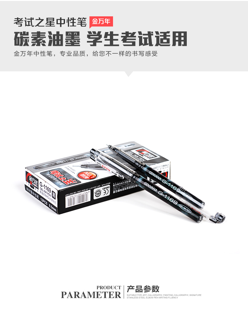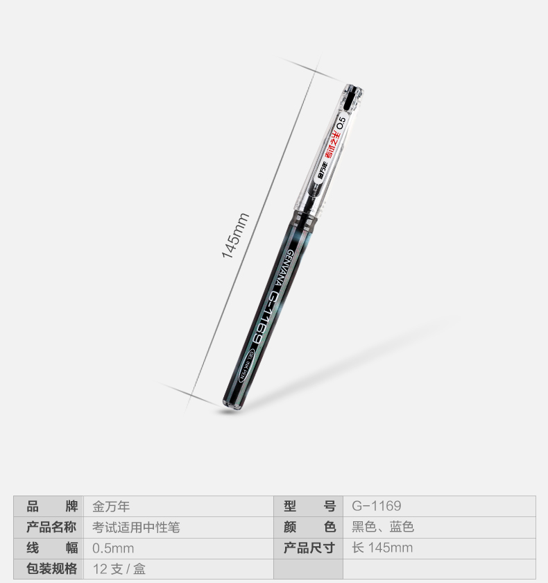 商品名称:金万年G-1169中性笔0.5水性笔 黑红蓝12支