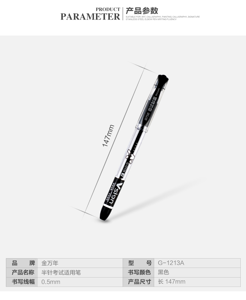 商品名称:金万年 G-1213A 中性笔 0.5mm黑色半针管考试专用笔