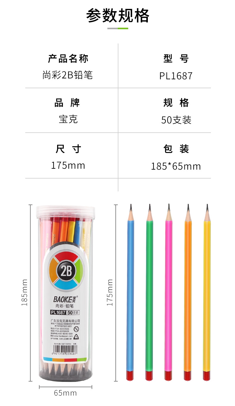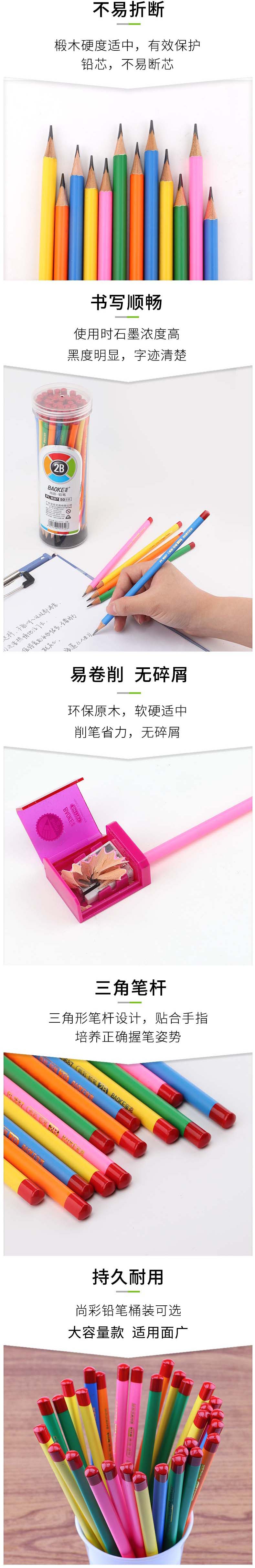 商品名称:宝克(BAOKE)PL1687 学生三角杆原木学姿铅笔素描绘画笔彩色杆 50支2B (计价单位:筒)
