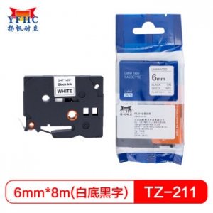 - 商品名称:扬帆耐立 TZ-211 标签带 标签纸色带 适用兄弟标签机色带 6mm白底黑字